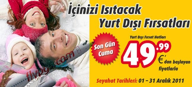 Yurt dışında 30 noktaya tarifeli seferler düzenleyen Pegasus, 2011’in sonuna gelirken yaptığı yurt dışı kampanyası ile iç ısıtacak tatil fırsatları sunmaya devam ediyor.