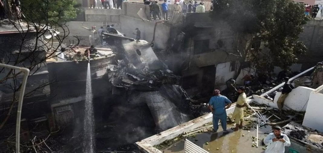 Pakistan Uluslararası Havayolları’na (PIA) ait yolcu uçağı, pist boyunca yüksek hızda sıyırıp geçtiği yerde durdurulan bir inişin ardından Karaçi’de bir yerleşim bölgesinde düştü.