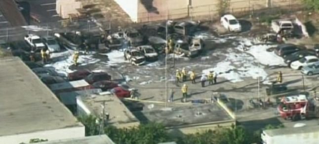 İtfaiye yetkilileri, otoparkta bulunan çok sayıda aracın alev aldığını ancak insanların zarar görmediğini belirtti.