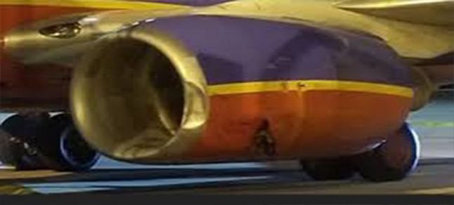 İlk olarak CBS tarafından yayınlanan görüntülerde uçağın motorlarından birinde büyük bir göçük olduğu görülüyor.