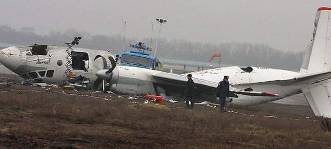 Odessa-Donetsk seferi yapmakta olan Antonov AN-24 tipi yolcu uçağı, Donetsk havaalanında pisti kaçırarak, yakındaki tarlaya sert iniş yaptı. Tarlada sürüklenen uçak, ters dönerek 3 parçaya ayrıldı.