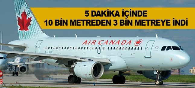 New Jersey-Vancouver seferini yapan Air Canada’ya ait bir yolcu uçağı, kabin basıncı düşünce çok kısa sürede alçalmak zorunda kaldı. Airbus A319 tipi uçak 5 dakika içinde 10 bin metreden 3 bin metreye indi.