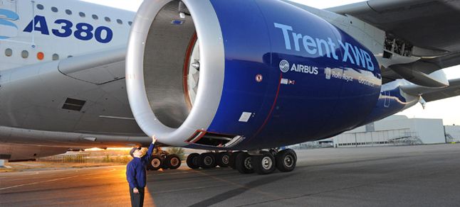 Yüksek parametreleri ölçmek için donatılmış test sensörleriyle Trent XWB, A380’in Trent 900 motorlarından birinin yerine konularak uçağın sol motor pilonuna yerleştirildi. Bu uçuştaki mürettebat; Airbus Deneysel test pilotları Terry Lutz ve Frank Chapman, Deneysel Test Uçuş Mühendisleri Pascal Verneau ve Uçuş Test Mühendisleri Emanuele Costanzo ve Tuan Do’ydu.