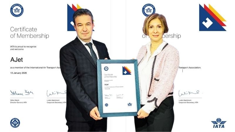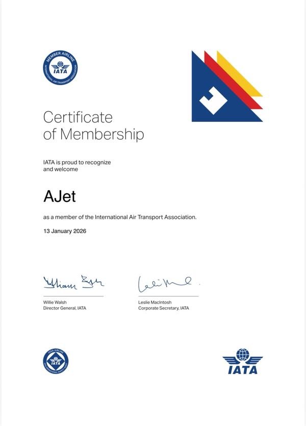 IATA üyelik sertifikası, AJet Genel Müdürlüğü’nde düzenlenen törenle IATA yetkilileri tarafından Kerem Sarp’a takdim edildi. Tören, AJet’in kısa sürede ulaştığı kurumsal olgunluğun ve uluslararası güvenilirliğinin somut bir göstergesi olarak değerlendirildi.