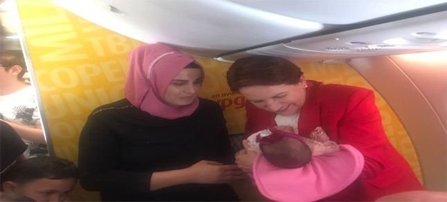 Uçak Ankara Esenboğa Havalimanından kalktıktan bir süre sonra uçuş hakkında bilgi veren pilot, ‘’Sayın yolcularımız, Cumhurbaşkanı adayı Sayın Meral Akşener de aramızda bulunmaktadır” dedi.
