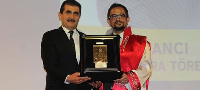 Ali Sabancı’ya fahri doktora belgesini Rektör Prof. Dr. Seyfullah Çevik verdi.