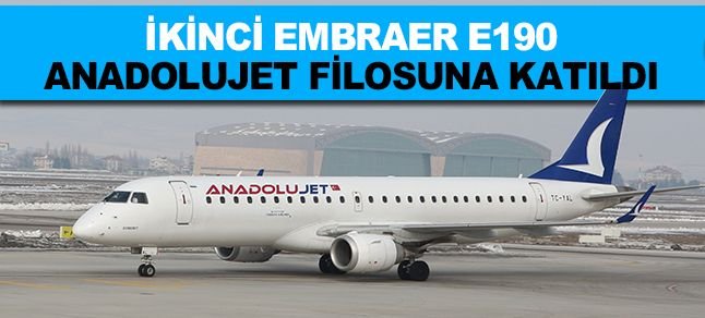 AnadoluJet’in filosuna dâhil olan ikinci Embraer E190 ile ilk seferini 7 Mart tarihinde TK 7182 sefer sayısı ve 80 yolcusu ile Ankara – Çorlu arasında yaptı. Bölgesel jet olarak adlandırılan Embraer E190’lar hızlı, ekonomik, kısa pistlerden rahatlıkla havalanabilen bir uçak olma özelliğini taşıyor. AnadoluJet, 110 yolcu kapasiteli yeni uçakları ile ilk aşamada Çanakkale, Hatay, Kahramanmaraş, Adıyaman gibi noktalarda sefer artışları ile uçuşlarını geliştirmeyi planlıyor.