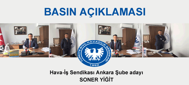 Hava İş Sendikası Ankara Şube Başkanlığına Hava-İş Sendikası Genel Merkezi adına aday olan Soner YİĞİT ve ekibinin seçim çalışmalarına ilişkin görüşlerini paylaştığı bildiri aşağıdadır.