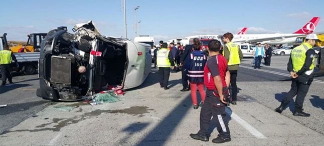 Atatürk Havalimanı apronunda iki servis aracının çarpışması sonucu 9 kişi yaralandı.Alınan bilgiye göre, içinde sadece sürücüsü bulunan bir servis aracıyla temizlik firması çalışanlarını taşıyan minibüs çarpıştı.
