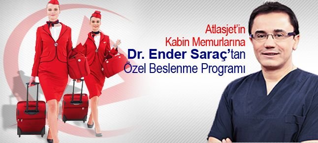 Dr. Ender Saraç’ın, Atlasjet kabin ekiplerine özel olarak hazırladığı beslenme programı sabah kahvaltısından, ara öğünlere, sağlıklı atıştırmalıklardan ana yemeklere kadar tüm öğünleri kapsıyor. Hem fazla kiloları vermeye hem de sağlıklı ideal formu korumaya yönelik olarak alternatifli olarak hazırlanan beslenme programları her uçuşta görev alan kabin memurlarının ihtiyaçlarına göre özel olarak belirleniyor.