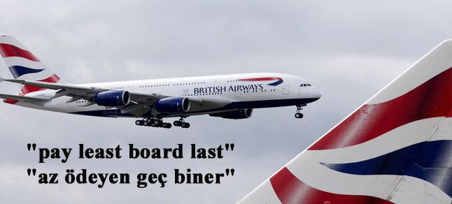 "Az ödeyen geç biner" ismi verilen yeni uygulamaya göre en ucuz bilete sahip yolcu uçağa binişe en son alınacak. 12 Aralık itibarıyla tüm yolcular için uygulanacak sistem Avrupa uçuşlarında geçerli olacak.