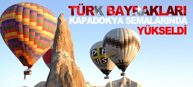 Göreme beldesinde çok sayıda sıcak hava balonunun sepetine, bu sabahki uçuşlarda, 10 Kasım Atatürk’ü Anma Günü ve Atatürk Haftası dolayısıyla Türk bayrağı asıldı.