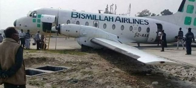 Bangladeş merkezli Bismillah Airlines şirketine ait S2-AAX tescilli BAe-748-347 Srs. 2A tipi kargo uçağı inişi sırasında yere çakıldı. Sol ana takımlarında meydana gelen çöküş sırasında yaşanan kırım sonucu uçak gövdesinin üzerine düştü.