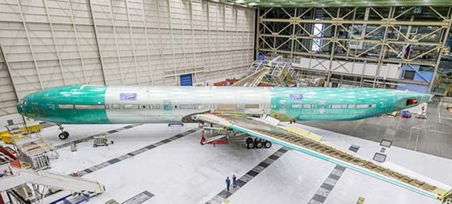 Boeing’in Washington eyaletindeki devasa hangarında 777X ilk defa monte edilmiş bir şekilde göründü. Kanat açıklığı 71.6 metre olan yolcu uçağının oldukça büyük pencereleri var. Sipariş veren firmalar arasında All Nippon Airways, Cathay Pacific ve Singapore Airlines yer alıyor.