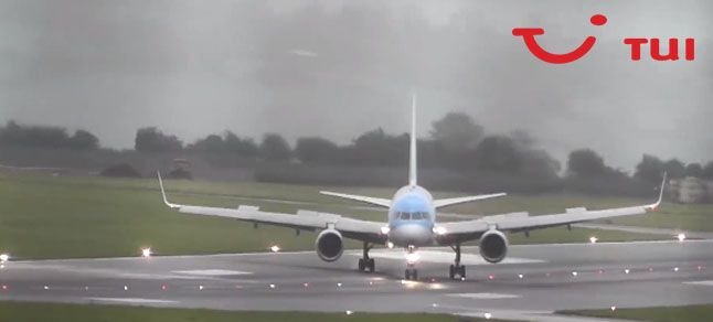 Aynı havalimanına TUI havayollarının bir pilotu zorlu hava koşullarına rağmen uçağı yanlayarak havalimanına indirmeyi başarıyor. Pilotun başarısı ise saniye saniye kameraya yansıyor.