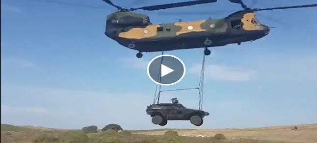 EFES-2018 Tatbikatı’nda Cobra’ların Chinook helikopterleriyle nakliyesi böyle görüntülendi. Cobra 4X4 taktik tekerlekli zırhlı araçların boş ağırlığı 5,2 iken muharebe ağırlığı 6,3 tona çıkıyor.