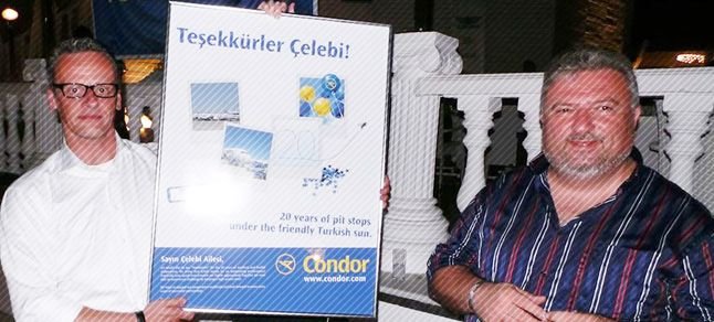 Condor Havayolları ve Çelebi Grubu, işbirliğinden duyulan memnuniyet çerçevesinde 20’nci yıl anısına karşılıklı hediyelerin de verildiği kutlamada konuşan Can Çelebioğlu ve Samim Aydın; Condor yetkililerine, başarılı işbirlikteliklerinin yanısıra gösterdikleri dostluk ve bağlılık için de ayrıca teşekkürlerini ilettiler.