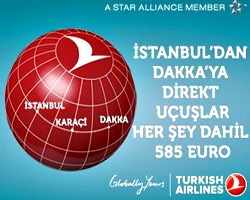Türk Hava Yolları artık Dakka’ya da uçuyor. Türk Hava Yolları’nın; Bangladeş’in başkenti olan ve 11 milyonu aşkın nüfusuyla dünyanın en kalabalık şehirleri arasında yer alan Dakka’ya, Karaçi üzerinden düzenlediği seferler Pazartesi, Çarşamba, Cuma ve Pazar günleri olmak üzere haftada 4 kez gerçekleştiriliyor. Yolcular, İstanbul’dan Dakka’ya, gidiş-dönüş, her şey dahil 585 €’ya uçabiliyorlar.