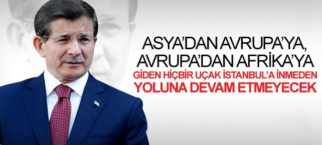 İstanbul’a doğru gelen her uçak, o uçağın içindeki her insan, İstanbul’un feyzinden, bereketinden istifade edecek. Asya’dan Avrupa’ya, Avrupa’dan Afrika’ya giden hiçbir uçak, İstanbul’a inmeden, İstanbul’un huzurunda selam durmadan yoluna devam etmeyecek.