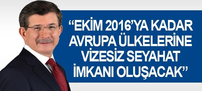Vizesiz Avrupa müjdesini de veren Davutoğlu, “İnşallah kısa bir zaman içerisinde. Ekim 2016’ya kadar AB üyelerine vizesiz seyahat imkanı oluşacak. Vatandaşlarımıza hayırlı olsun. Bu sembolik değeri yüksek bir adım. İş adamlarımızı, saygın aydınlarımızın AB ülkesi üye ülkelerin kapılarında, konsoloslukları önünde nasıl beklediklerini biliriz. Bazı iş adamlarımızın mallarını Avrupa fuarlarına gittiğini ama kendilerinin ulaşamadığını bir gerçek olarak yaşardık.
