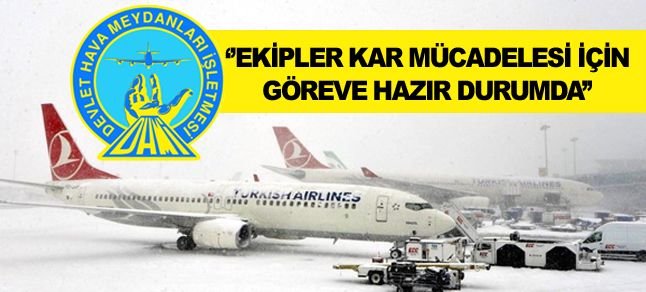 “Başta Atatürk ve Esenboğa olmak üzere kötü hava koşullarının etkili olduğu tüm havalimanlarımızda kar mücadele çalışmaları yoğun bir şekilde devam etmektedir. Havalimanlarımızda tüm pist, apron ve taksiyollarımız açıktır. Ekiplerimiz, eksiksiz kar mücadelesi için 7 gün 24 saat göreve hazır durumdadır. An itibarı ile iniş kalkışların durdurulduğu havalimanı bulunmamaktadır.