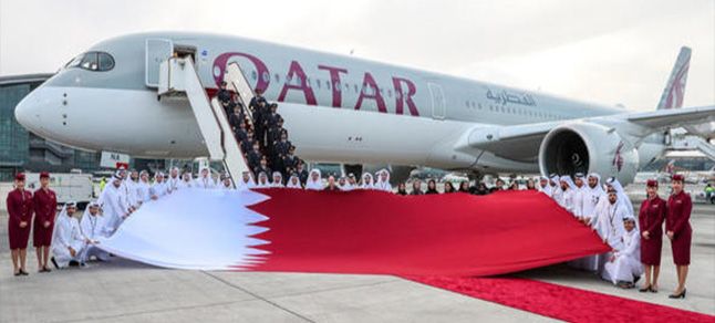 Dünyanın en büyük ve güçlü ticari uçağı Airbus A350-1000 için Katar Havayolları’nda hizmete başlamak üzere geldiği başkent Doha’da karşılama töreni yapıldı.