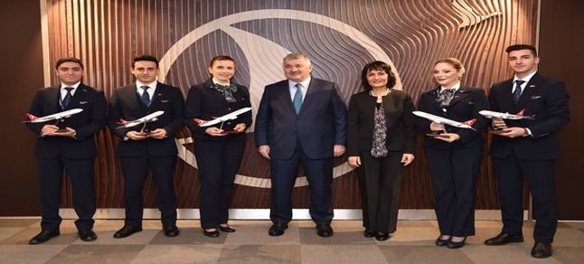 Aldıkları eğitim ve Anadolu misafirperverliği ile süreci profesyonellik ile yöneten değerli ekibimizi candan tebrik ederim.THY gururur markamız" diye konuştu. Ekip üyeleri ile hatıra fotoğrafının ardından Ekşi, kabin görevlilerinin isimlerinin yazılı olduğu Türk Hava Yolları model uçaklarından armağan etti.
