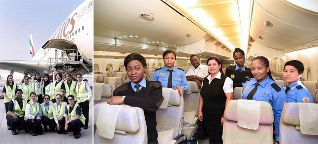 Emirates Group, 150’den fazla milliyetten kadın çalışana sahip. Buna, milliyeti Emirlikler olan, işletmenin her yerinde, çeşitli görevlerde bulunan yaklaşık 1,150 kadın çalışan da dahil ve Grup dahilinde, üst düzey idari görevlere sahipler. Genel olarak, Emirates’te, çoğunluğu kabin ekibi olarak görev alan kadın çalışanlar, işgücünün %40’ını oluşturuyor. Emirates dahilindeki idari ve denetsel rollerin %20’den fazlasını da kadınlar üstlenmiş durumda.