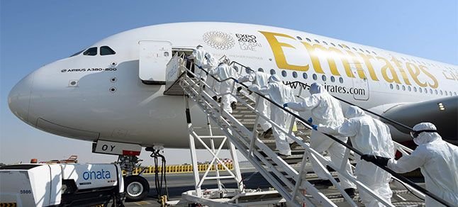 Emirates, Dubai’deki merkezinden kalkan tüm uçaklarda tedbir olarak tüm kabinler için gelişmiş temizlik ve komple dezenfeksiyon uygulamasını devreye sokmuştur. Tıbbi uzmanların COVID-19 virüsünün temel olarak temas yoluyla bulaştığı yönündeki en yeni bulgusu doğrultusunda, Emirates önemli ölçüde yüzey temizliğine odaklanmaktadır.
