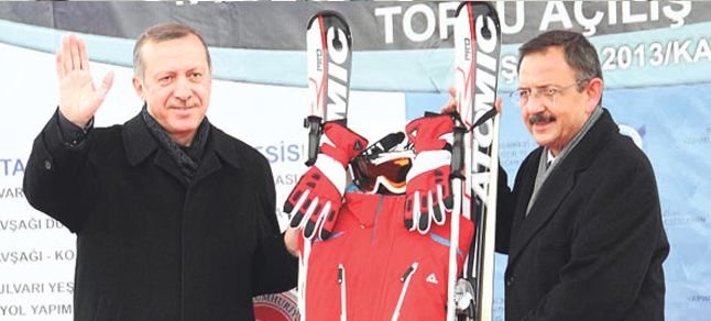 Başbakan Tayyip Erdoğan 2 bin 500 metre yükseklikteki Erciyes Dağı’nın Kayak Merkezi’nde düzenlenen törende 123 milyon TL’lik 41 eserin toplu açılışını yaptı. Vatandaşların kar üstünde dinlemesi nedeniyle kısa kestiği konuşmasında, Erdoğan şu mesajları verdi:
