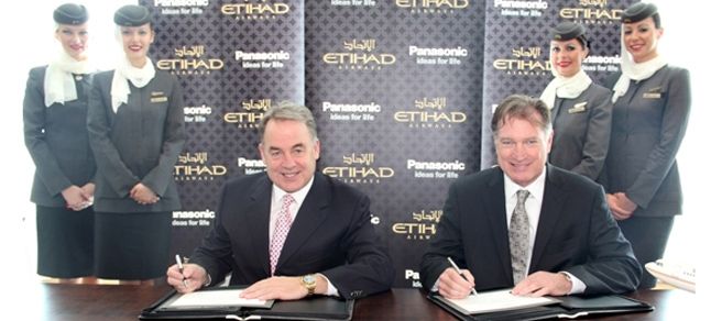 Bu doğrultuda, Etihad Havayolları CEO’su James Hogan ve Panasonic Avionics CEO’su Paul Margis, kabin içi eğlence ve iletişim servisleri ile mobil telefon hizmetlerini içeren 10 yıllık bir münhasır anlaşma için niyet mektubu imzaladı.