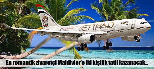 “Cennete Kaçış” (Escape to Paradise) adı verilen yarışmanın kazananı, Etihad’ın dünyadaki 67’inci uçuş noktası Malé’ye 1 Kasım 2011 tarihinde gerçekleştirilecek olan ilk uçuş için iki kişilik gidiş-dönüş bileti ile tüm transferleri ve SixSenses Laamu Maldives’de 4 gece tam pansiyon villada konaklamayı içeren harika bir tatil kazanacak*. 31 Temmuz 2011 tarihine kadar sürecek olan yarışmaya katılmak için adayların Etihad’ın facebook sayfası www.facebook.com/etihad.airways’e girip ne kadar romantik olduklarını belirleyecek olan anketi yanıtlaması gerekiyor.