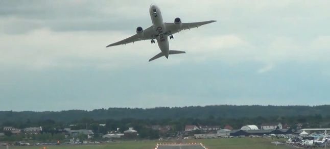 Katar Havayolları’na ait Boeing tipi uçağı uçuran pilot, dev uçakla gökyüzünde daha çok gösteri uçaklarıyla gerçekleştirilen akrobasi hareketlerinden yaptı.
