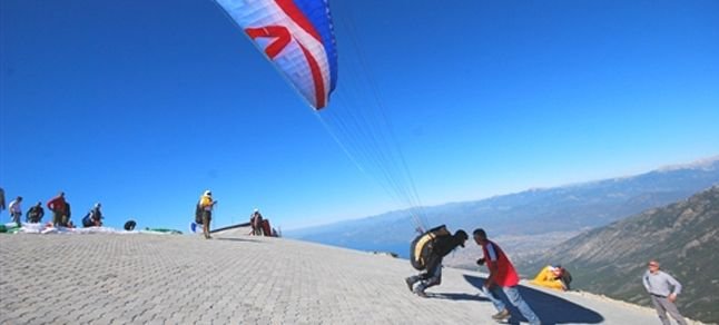 Dünyanın en gözde yamaç paraşütü merkezi olan 1970 metre yüksekliğindeki Babadağ’dan uçan paraşütler gökyüzünü renk cümbüşüne çevirdi.