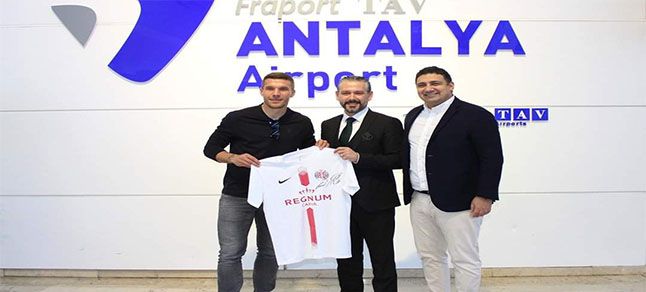 Yıldız futbolcu, üzerinde Antalyaspor logosu bulunan çay bardakları ile yapılan serviste çayını yudumlarken, günün anısına imzasını attığı bir formayı da Fraport TAV Genel Müdürü Deniz Varol’a takdim etti. Podolski, firma personelinin fotoğraf çektirme isteklerini de geri çevirmedi.