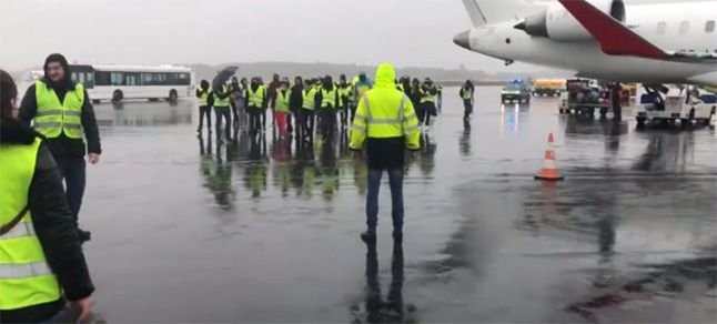 Nantes Atlantique Havalimanı’na giren yaklaşık 30 gösterici, uçak pistlerini işgal ederek, havalimanı trafiğini engelledi.Yapılan resmi açıklamada, uçuşların bir süreliğine durdurulduğu ve buna bağlı gecikmelerin yaşanabileceği belirtildi.
