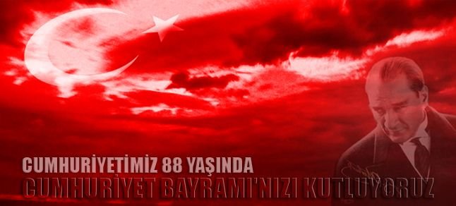 Cumhuriyetin 88. yaşını ulusça buruk olarak kutluyoruz. Şehit ve deprem haberleri ile acı günler yaşayan TÜRKİYE’NİN CUMHURİYET BAYRAMINI KUTLUYORUZ.