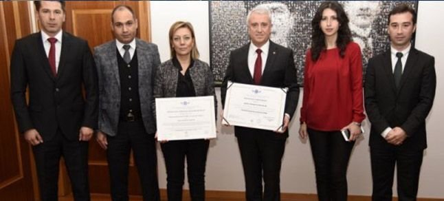 Hasan Polatkan Havalimanı Sorumlu Müdürü ve Havacılık ve Uzay Bilimleri Fakültesi Dekanı Prof. Dr. Semra Kurama, Hasan Polatkan Havalimanı’na verilmiş olan sertifika ve terminal binası işletme ruhsatını Anadolu Üniversitesi Rektörü Prof. Dr. Naci Gündoğan’a makamında takdim etti.