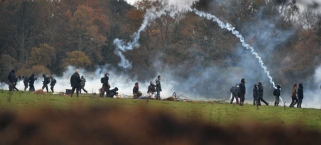 Ancak grubu tahliye etmek isteyen polis, buldozerler eşliğinde bölgeye girince arbede yaşandı. Direniş gösteren çevrecilere karşı göz yaşartıcı gaz kullanıldı.
