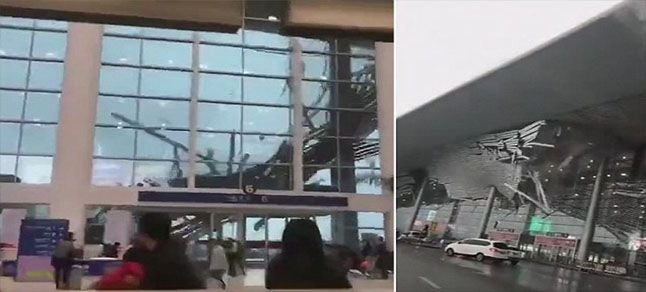 Nanchang Changbei Uluslararası Havaalanı’nda 2 numaralı terminalin giriş çatısının çöktüğü anda yolcular arasında paniğe yol açtı. Yıkılan bir elektrik direği ise yoldan geçen bir otobüsün üstüne düştü. Olayda herhangi bir can kaybı ve yaralanma bildirilmedi.