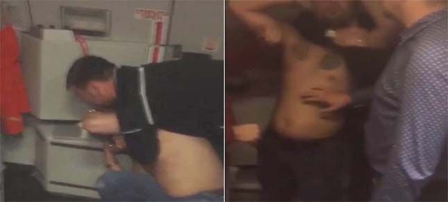 Uzun boğuşmadan sonra yere yatırılan erkeğin üstündeki tişört çıkarıldı ve adam hareketsiz hale getirildi.Rusya’nın başkenti Moskova’dan havalanan yolcu uçağında akıllara durgunluk veren olaylar yaşandı.