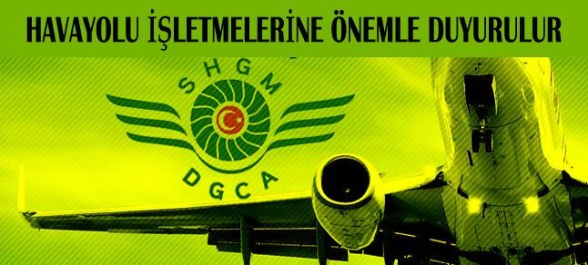 Havayolu işletmelerine ve yetkili personellerine önemle duyurulur.