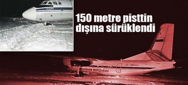 Rusya’da Ariada-Akpars hokey takımının sporcularını taşıyan An-24 tipi yolcu uçağı iniş yaptıktan sonra 150 metre pisttin dışına sürüklendi. Yaşanan kazada ölen yada yaralanan olmadı. Rusya’nın Krasnodar kentinden kalkan ve Saransk aktarmalı Kazan’a havalanmak isteyen uçak tehlikenin eşiğinden döndü. Çarşamba günü saat 01.10 sularında Saransk kentindeki havaalanına iniş yapan uçak kontrolünü kaybettikten sonra yan kayarak 150 metre pistin dışına sürüklendi. Mardoviya Havayolları’na ait uçakta bulunan 29 kişiden yaralanan yada hayatını kaybeden olmadı.