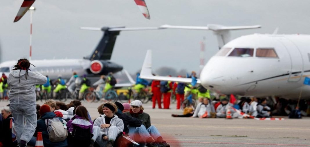 Hollanda’da çevreci gruplar, iklim değişikliğine dikkati çekmek amacıyla Amsterdam Schiphol Havalimanı’ndaki uçuş sayılarının azaltılması ve hava yoluyla daha az seyahat edilmesi için gösteri düzenledi.