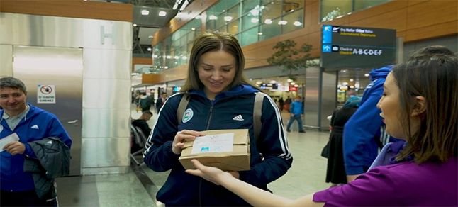Bir kadın yolcu, "Tam İstanbul’dan ayrılırken çok güzel bir hediyeyle karşılaştık. Sabiha Gökçen Havalimanı’na ve kadın üreticilere çok teşekkür ederiz. Kadınlar ürettikçe daha da güçlü" diye konuştu.