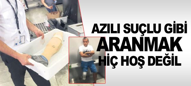 Mutlu, güvenlik görevlilerine gazi kimliğini gösterse de protez bacağını kutuya koyarak güvenlik noktasından geçebildi.