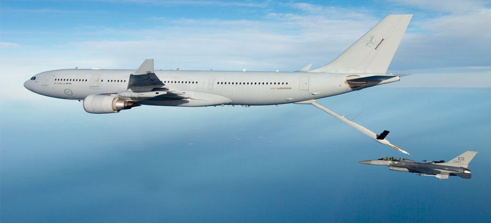 A330 MRTT, bugün uçan ve mevcut olan tek yeni nesil stratejik tanker ve nakliye uçağı konumunda. A330-200’den dönüştürülen uçak 111 tonluk yakıt kapasitesi ile havadan havaya yakıt ikmal görevlerinde ek yakıt tanklarına ihtiyaç duymadan görev yapabiliyor.