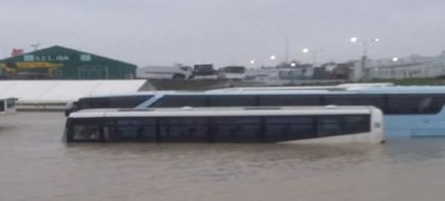 İlçedeki İstanbul Havalimanı’nın şantiye alanını su bastı. Şantiyenin hemen alt bölümünde bulunan otopark alanındaki araçların sular altında kaldığı görüldü.