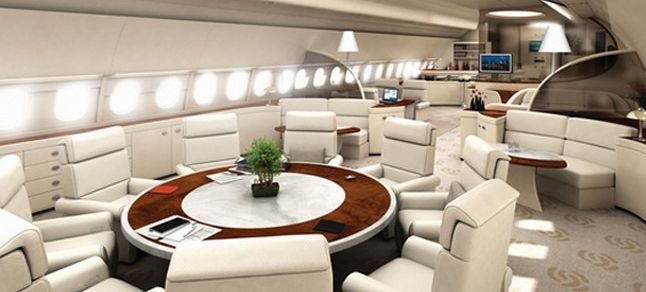 Uçağın içine toplantı salonu, özel dinlenme alanları, çalışma ve yatak odaları yerleştirildi. Ticari amaçla kullanıldığında 253 yolcu taşıyabilen uçağın kapasitesi yapılan tadilatla 90 kişiye düştü.
