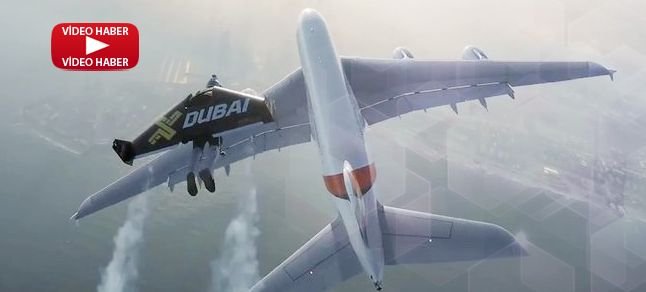 Jetman Yves Rossy ve partneri Vince Reffet’ın, Emirates filosuna bu yıl Nisan ayında katılan yeni dünyanın en büyük yolcu uçağı Airbus A380 uçağıyla yaptıkları gösteri nefes kesti.